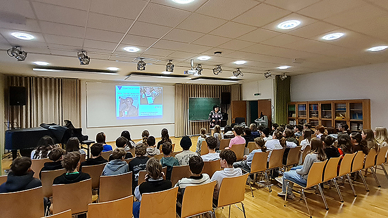 Die 48 Schüler:innen bekamen am 26. November 2025 einen Einblick in eine Zeit, in der für Andersdenkende kein Platz war und die Religionsfreiheit eingegrenzt wurde. Menschenwürde war ein Fremdwort und Ausgrenzung an der Tagesordnung. Hermine verweigerte mit 11 Jahren den deutschen Gruß, das Singen patriotischer Lieder und den Fahnengruß. Sie gehörte wie ihre Eltern den Bibelforschern an (wie Zeugen Jehovas damals genannt wurden) und konnte aus biblischer Überzeugung Hitler nicht als Führer anerkennen. Daran änderte auch die Unterbringung in einem Umerziehungsheim nichts.