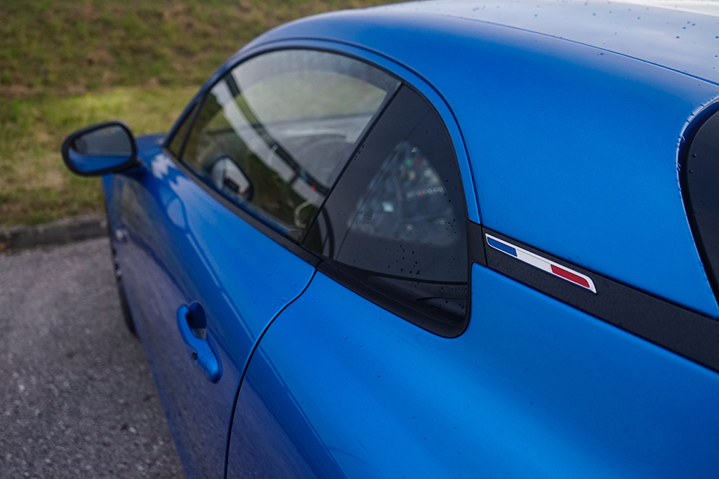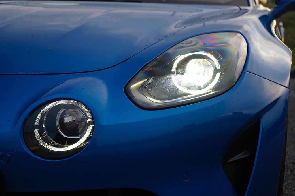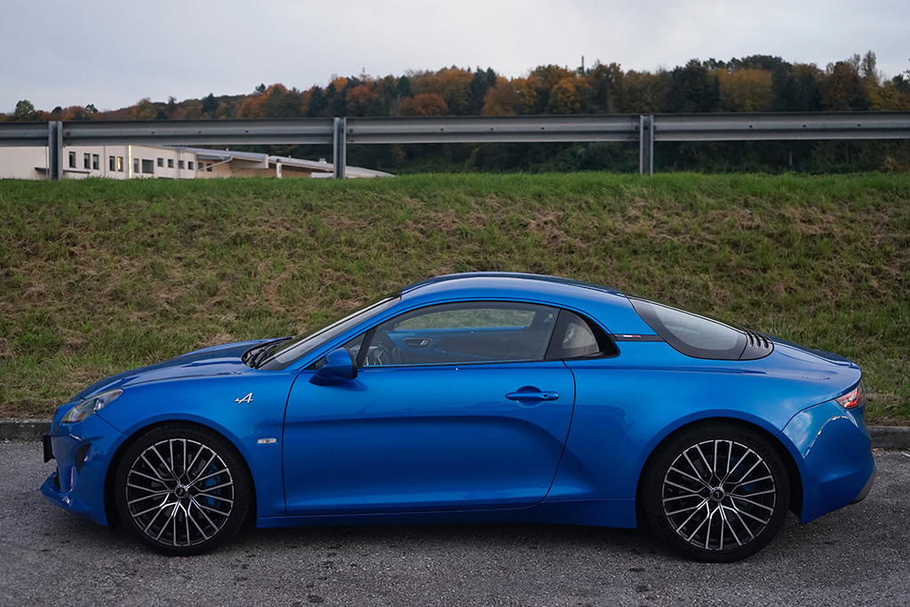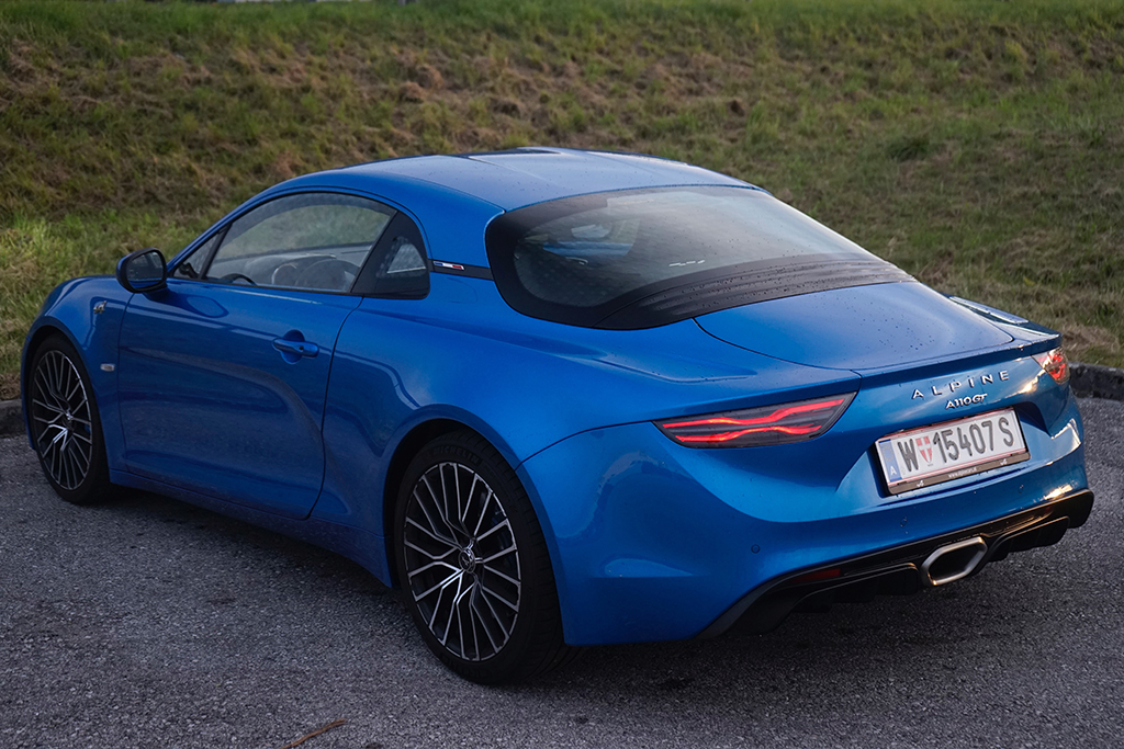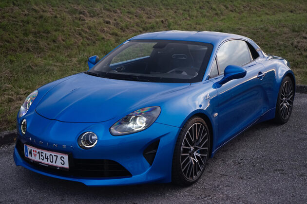 Wir gehen einmal um sie herum und können uns kaum sattsehen. Alpine-Blau, ein Farbton wie flüssiges Adrenalin, schimmert über den perfekt modellierten Rundungen. Die „4,18 m langen Proportionen“ sind fast schon klassisch: flach, breit, kompakt, kein übertriebener Spoiler, sondern klare Linien und Konzentration auf das Wesentliche. Das ist kein Auto, das aufdringlich wirken muss. Es flüstert: „Wenn du weißt, was du tust, wirst du mich verstehen.“