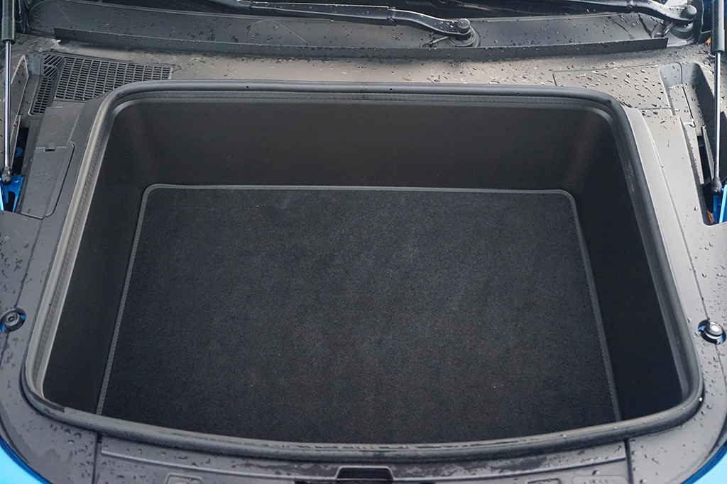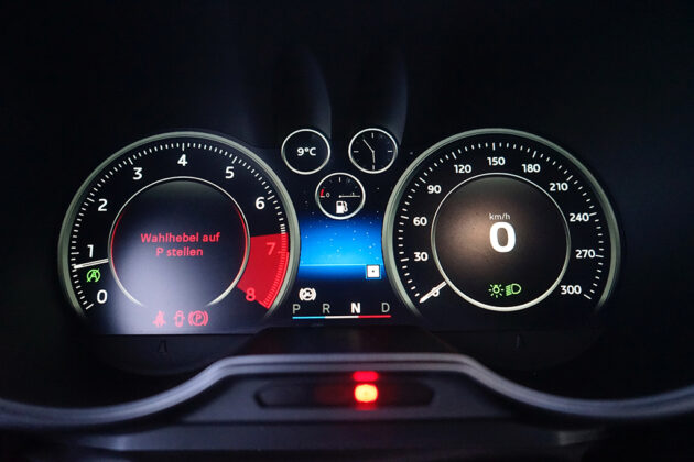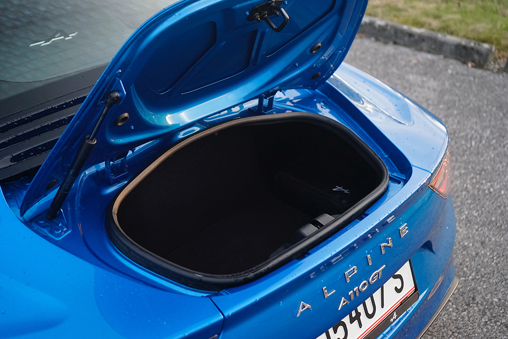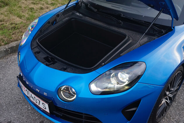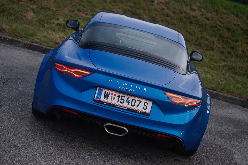 Die 221 kW / 300 PS schieben nicht nur brachial, sondern präzise. Der Mittelmotor liegt wie ein Herzmuskel zwischen uns und dem Asphalt, die 7-Gang-Doppelkupplung schaltet chirurgisch. Einlenken: sofort. Lastwechsel: klar definiert. Jede Lenkbewegung wird beantwortet, nicht interpretiert. Wir spüren die Vorderachse leben, spüren den Heckmotor arbeiten, werden Teil der Mechanik. Die Alpine sprintet in glatten vier Sekunden auf 100 km/h, doch diese Zahl beschreibt nicht, was passiert. Was passiert, ist Vertrauen. Rhythmus. Und Nähe besonders in den Fahrmodi Sport oder gar Track!