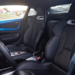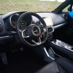 Wir öffnen die leichte Tür, setzen uns tief in die beheizbaren Ledersitze. Keine übertriebene Lounge, kein Ablenkungstheater. Aluminium-Pedale, kompakte Anzeigen, fein beledert, sauber vernäht – ein Cockpit, das uns nicht inszeniert, sondern einschließt. Alpine-Telemetrics wartet bereit, um uns Herzfrequenz und G-Kräfte zu zeigen, nicht Social-Media-WLAN. Die Fußstütze aus Aluminium, die Leder-Fußmatten mit Alpine-Logo, die filigrane Aluminium-Mittelkonsole mit sportlichem 7“ Touchscreen des Multimedia-System inklusive Focal-Premium Systems – alles spricht von Leidenschaft für Fahrer.