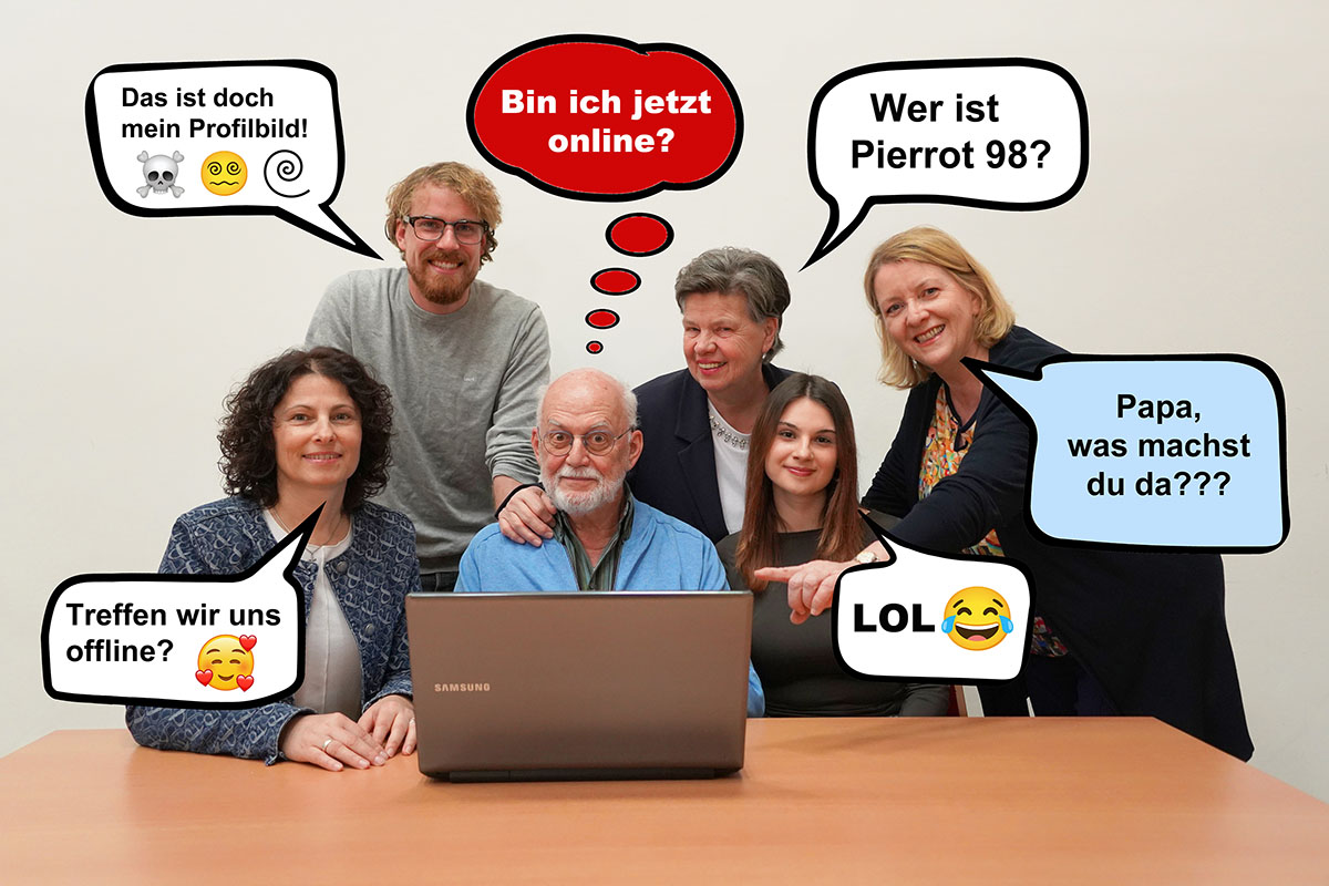 Monsieur Pierre (Franz Reisinger) ist verwitwet, etwas eigenwillig und überzeugt davon, dass das echte Leben nichts mit dem digitalen zu tun hat. Doch seine Tochter Sylvie (Birgitt Reithner) und seine Enkeltochter Juliette (Violetta Raubal) sehen das anders – und schon findet sich Pierre, mit Hilfe von Juliettes Freund Alex (Felix Hagen), in einer Welt aus Chats, Online-Angeboten und virtuellen Begegnungen wieder. Mit dem irrtümlich verwendeten Profilbild von Alex, und seinem ganz eigenen Schreibstil voll Poesie wird Flora (Hannelore Mayrhofer) auf Pierre aufmerksam. Es kommt zu einem Zusammentreffen, und das Verwirrspiel nimmt seinen Lauf. Kann am Ende doch noch Brigitte (Eva Fexa) mit ihrem Profil Pierre für sich gewinnen? Das Stück zeigt auf humorvolle Weise, dass es für Liebe, Freundschaft und neue Chancen keine Altersgrenzen gibt.