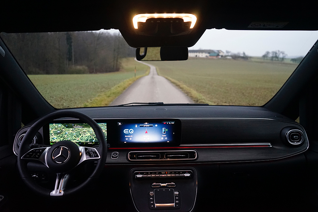 Auch fahrdynamisch überzeugt der EQV mit einer ruhigen, stabilen Abstimmung. Das Fahrwerk filtert schlechte Straßen souverän weg, die Lenkung wirkt präzise genug, um den großen Van sicher zu führen, und selbst bei voller Beladung bleibt das Fahrzeug gut kontrollierbar. Der elektrische Antrieb sorgt zudem für eine sehr niedrige Geräuschkulisse, was den Eindruck eines hochwertigen Reisefahrzeugs weiter verstärkt.