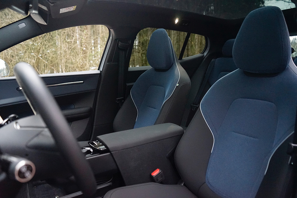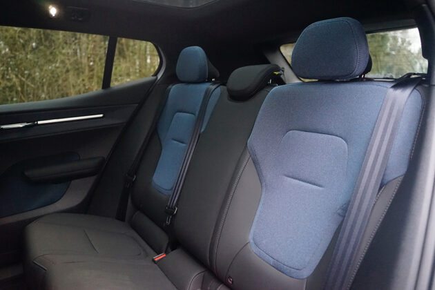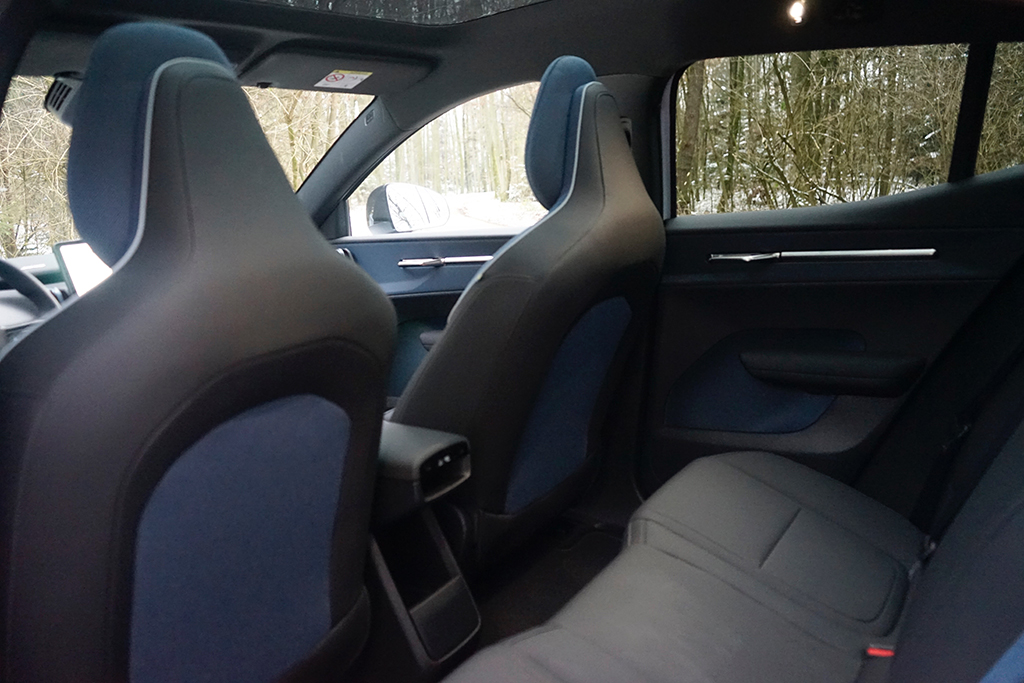 Innen setzt Volvo auf skandinavische Klarheit mit einer überraschend hochwertigen Note. Der Indigo-Innenraum wirkt modern, aufgeräumt und gleichzeitig wohnlich. Die Materialien fühlen sich angenehm an, alles wirkt durchdacht und sauber verarbeitet. Die Sitze sind bequem geformt und auch auf längeren Strecken angenehm, das große zentrale Touchdisplay ist klar strukturiert und schnell bedienbar, und das digitale Cockpit liefert alle wichtigen Informationen auf einen Blick. Die abgedunkelten Seiten- und Heckscheiben schaffen nicht nur Privatsphäre, sondern verstärken auch das edle Lounge-Gefühl im Innenraum. Dazu kommen praktische Details wie die elektrische Heckklappe, schlüsselloser Zugang und ein hochwertiges Audiosystem, die den Alltag deutlich erleichtern.
