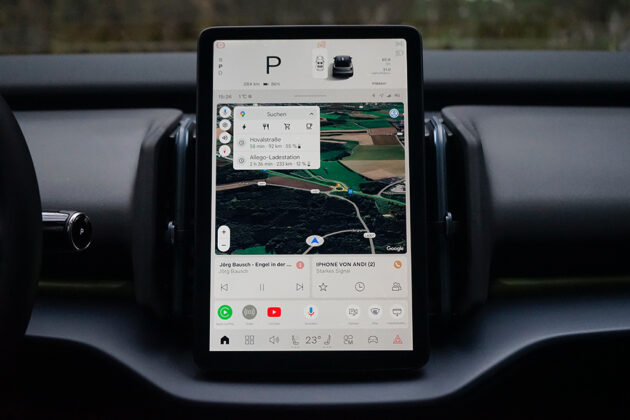 Die Batterie hat eine nominale Kapazität von 69 kWh. In unserem Alltagsbetrieb kommen wir auf einen getesteten Verbrauch von rund 18,1 bis 19,6 kWh pro 100 Kilometer, was für ein Allrad-Elektroauto mit über 400 PS sehr respektabel ist. Damit sind praxisgerechte Reichweiten möglich, die den EX30 auch für längere Strecken absolut tauglich machen, die Ladedauer von 10-80 % benötigt ohnehin kurze 26 Minuten.