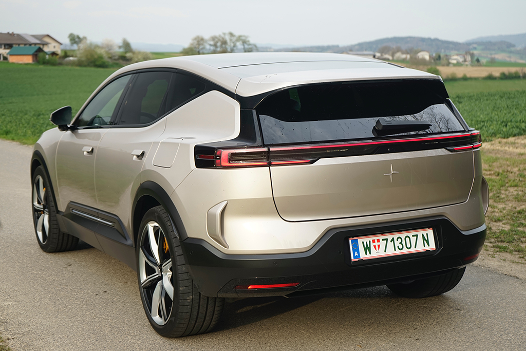 Angetrieben wird unser Testfahrzeug von zwei Elektromotoren – jeweils einer an Vorder- und Hinterachse – mit einer Systemleistung von kraftvollen 360 kW bzw. 489 PS sowie satten 840 Nm Drehmoment. Damit gelingt der Sprint von 0 auf 100 km/h in gestoppten 4,9 Sekunden, im Handumdrehen steht die Höchstgeschwindigkeit von abgeregelten 210 km/h am Tachodisplay. Trotz des Gewichts von rund 2,6 Tonnen fühlt sich der Polestar 3 erstaunlich agil an, die flotte „Kurvenhatz“ ist fast eine Stärke des Polestar 3. Die serienmäßige adaptive Zweikammer-Luftfederung passt sich in Echtzeit der Fahrbahnbeschaffenheit an und sorgt für einen eindrucksvoll ausgewogenen Fahrkomfort. Das Geräuschniveau ist auf höchstem Oberklassenniveau angesiedelt, der Antritt souverän und unmittelbar. In Summe beschleunigt dieser Polestar 3 nicht ungesittet wie ein „Kreuz- und Genickverstaucher“ sondern mit linear steigendem Nachdruck – der Punch ist tatsächlich eine überdimensionale Wucht. Umgekehrt beeindruckend verzögern die Brembo-Performance-Bremsen.