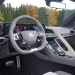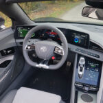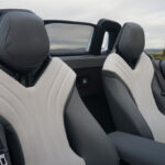 Im Innenraum geht es futuristisch weiter. Die immersive, geschwungene 3-teilige Displaylandschaft umschließt uns fast wie ein Cockpit im Gaming-Look, ohne dabei unübersichtlich zu wirken: Der aufrechte 7-Zoll-Touchscreen in der Mittelkonsole übernimmt Klima und Fahrzeugfunktionen, während die dreiteilige 10,25-Zoll Instrumentenanzeige klar gegliedert bleibt, ein weiterer 7-Zoll Touchscreen agiert als Zentrum des Infotainments. Die Serienausstattung des GT umfasst bereits ab Werk elektrisch verstellbare Sportsitze samt Memoryfunktion, Bose-Soundsystem, umfangreiche Assistenzsysteme, Navigationssystem, Smartphone-Integration, beheizbares Lenkrad etc. Die Sportsitze sind straff, tief eingebaut und geben uns sofort das Gefühl, IM Auto zu sitzen und nicht bloß darauf. Dieses Cockpit ist keine Hommage an klassische Roadster, sondern eine moderne Bühne – und genau das harmoniert erstaunlich gut mit dem offenen Charakter.