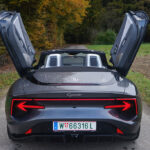 Wir öffnen die Scherentüren, lassen das Stoffverdeck elektrisch nach hinten gleiten und spüren sofort, dass dieser Roadster nicht einfach E-Mobilität verspricht, sondern pure Emotion – made in China!