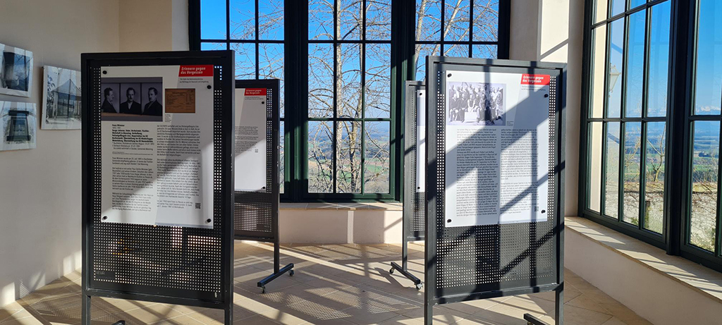Erinnern gegen das Vergessen. Das war auch ein Anliegen von Heidi Gsell, Mitglied des Vereins Lila Winkel, der Hanna Bauer tatkräftig bei der Umsetzung des Projekts unterstützte. Sie lernte Hubert Mattischek aus Ottnang am Hausruck 1997 in der Gedenkstätte Mauthausen anlässlich der Uraufführung des Videos Standhaft trotz Verfolgung kennen. Für Mattischek war dieser Tag ein besonderer, da man mit diesem Video, das Jehovas Zeugen produziert hatten, erstmals mit der NS-Geschichte der Glaubensgemeinschaft an die Öffentlichkeit ging. Eine der 15 Ausstellungstafeln erinnert an seinen Leidensweg und an seine Standhaftigkeit. Überhaupt ist Familie Mattischek ein wesentlicher Bestandteil der Ausstellung, denn gleich 5 Tafeln erzählen die Geschichte von Wolfgang, Theresia, Franz, Wilhelm und Hubert.