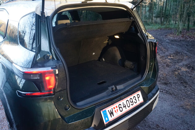 Beim Platzangebot überrascht der C3 Aircross positiv. Trotz seiner kompakten Außenlänge bietet er vorne wie hinten genügend Kopf- und Beinfreiheit, sodass auch Erwachsene bequem reisen. Besonders praktisch ist die im Verhältnis 40:60 umklappbare Rückbank, mit der sich der Innenraum flexibel anpassen lässt. Der Kofferraum fasst 460 Liter, mit umgeklappten Sitzen wächst das Ladeabteil auf bis zu 1.600 Liter – damit wird der kleine Citroën zum veritablen Transporthelfer für Alltag, Einkauf oder Wochenendtrip.
