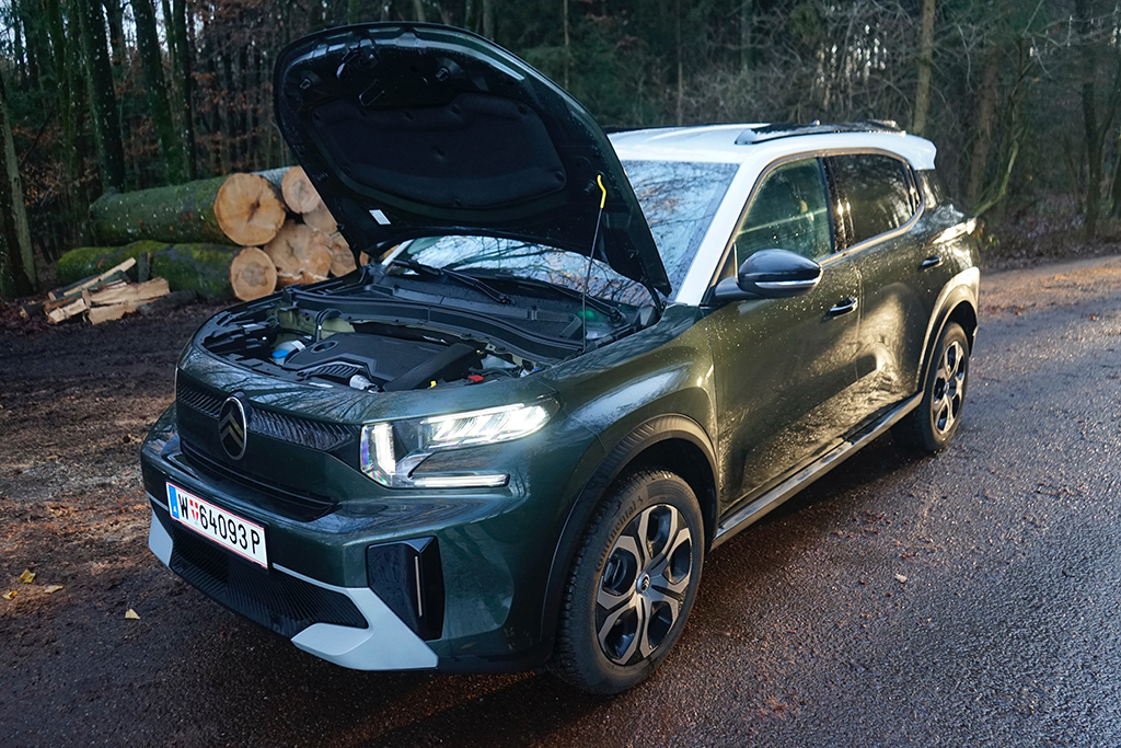 Unter der Haube arbeitet der neue Mild-Hybrid-Antrieb mit einer Systemleistung von 106 kW / 145 PS. Der 1,2-Liter-Dreizylinder-Turbo wird von einem Elektromotor unterstützt und ist mit einem 6-Gang-Doppelkupplungsgetriebe kombiniert. Im Alltag fährt sich der Aircross angenehm lebendig: Er beschleunigt zügig bis zur Vmax von beachtlichen 201 km/h, reagiert spontan auf Gasbefehle und bleibt dabei stets kultiviert. Besonders im Stadtverkehr spielt die Hybridunterstützung ihre Vorteile aus, indem sie das Anfahren geschmeidiger und leiser macht.