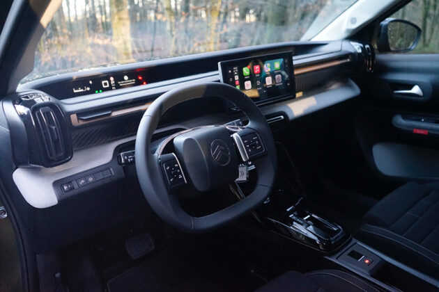 Auch innen empfängt uns sofort dieses typische Citroën-Ambiente, das mehr Wohnzimmer als Techniklabor sein will. Weiche Materialien, helle Akzente und ein angenehm luftiges Raumgefühl prägen den ersten Eindruck. Die Advanced-Comfort-Sitze sind großzügig gepolstert und laden auch auf längeren Strecken zum entspannten Sitzen ein. Vor uns arbeitet ein digitales Kombiinstrument, in der Mitte des Armaturenbretts thront der Touchscreen für Navigation, Medien und Fahrzeugfunktionen. Alles ist übersichtlich angeordnet, leicht erreichbar und wirkt erfreulich wenig verspielt, sondern funktional französisch-chic.
