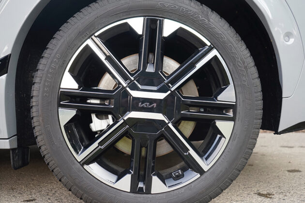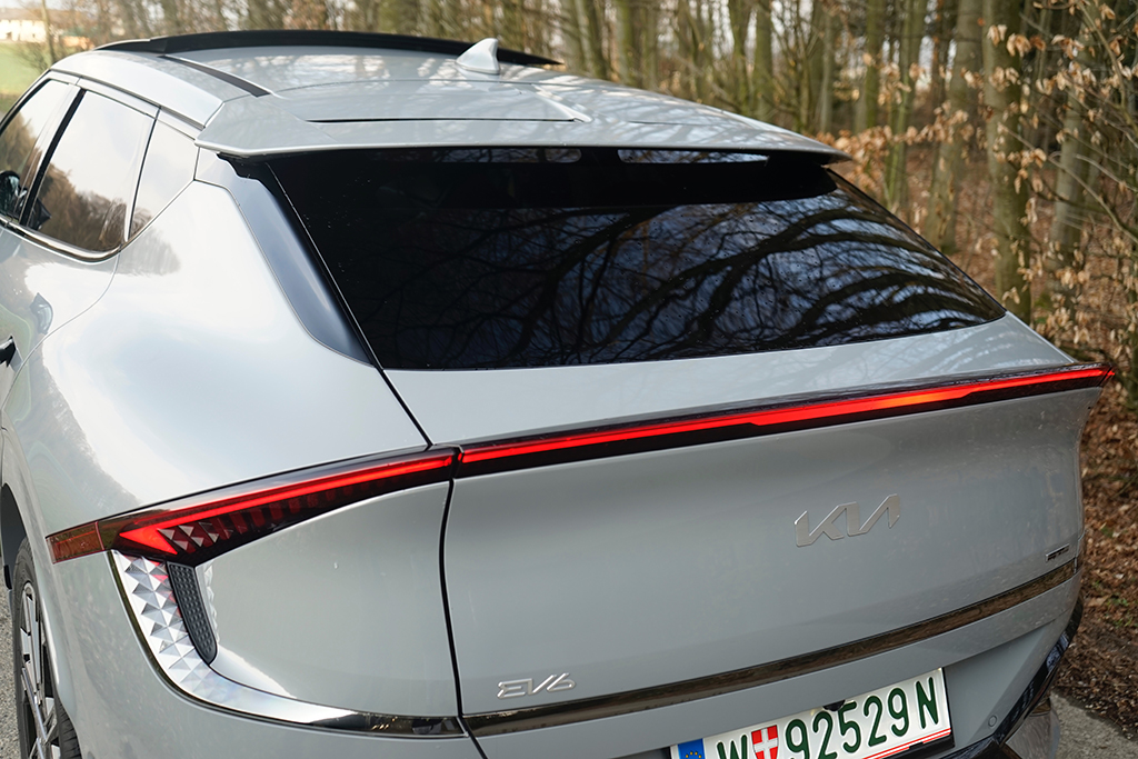 Auch wenn der neue Modelljahrgang leichte Veränderungen an Front -und Heckschürze aufweist – rein äußerlich war und ist der EV6 auch heute noch – 4 Jahre nach Markteinführung und unzähligen Prämierungen wie „Auto des Jahres“– noch immer ein echter Blickfang. In der GT-line-Ausstattung wirkt er zudem sportlich, modern und dennoch elegant – ein gelungener Spagat, der sofort Aufmerksamkeit erzeugt. Die coupéhafte Silhouette, die markanten neu definierten LED-Scheinwerfer mit verbindender LED-Mittelleiste im „Digital Tiger Face“-Design und der muskulös geformte Heckbereich mit durchgezogenem LED-Lichtband wirken wie aus einem Guss. Der EV6 steht wuchtig auf der Straße, ist 4,695 Meter lang, 1,89 Meter breit und nur 1,55 Meter hoch – das sorgt für eine gestreckte, gedrungene und extrem dynamische Präsenz. Dazu passend: neu designte 20-Zoll-Leichtmetallfelgen, GT-line-spezifische Schürzen und Schweller sowie abgedunkelte Scheiben rundum. Der EV6 wirkt wie ein Fahrzeug aus der Oberklasse, und das nicht nur beim ersten Hinsehen.