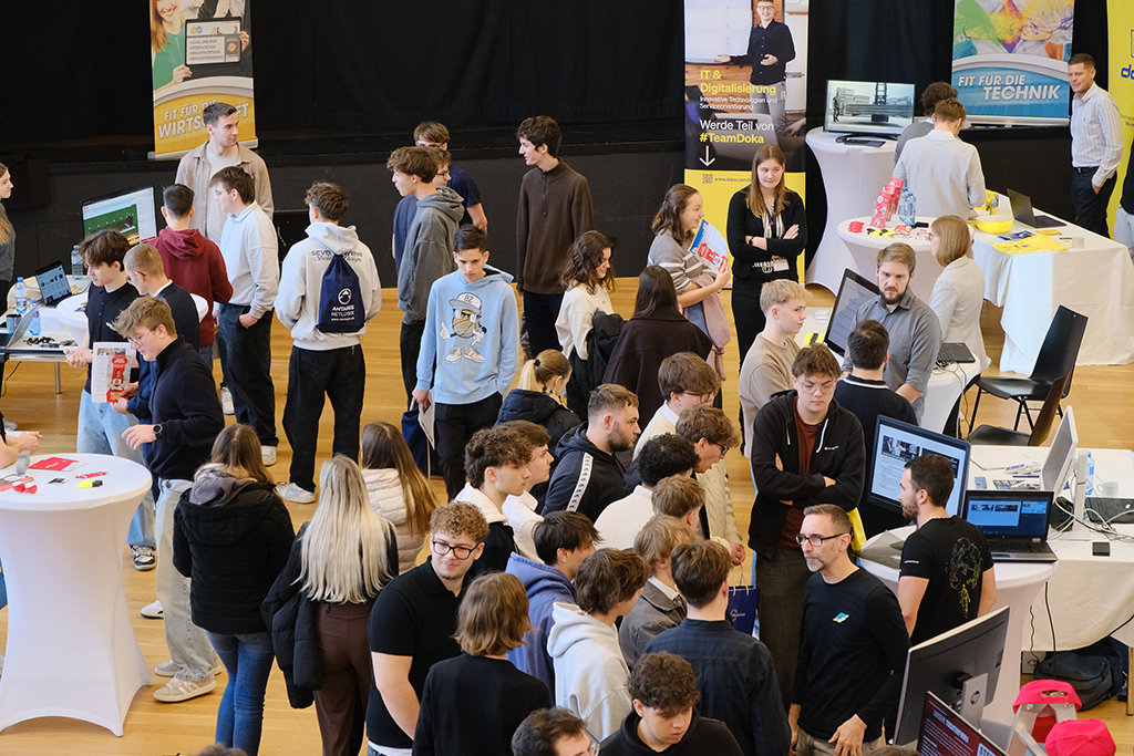 32 Unternehmen aus der Region, deren Infostände durch zahlreiche Absolventinnen und Absolventen des Schulzentrums betreut wurden, nutzten die Gelegenheit, um mit den Schülerinnen und Schülern in Kontakt zu treten und sie über die vielfältigen Karrieremöglichkeiten zu informieren.