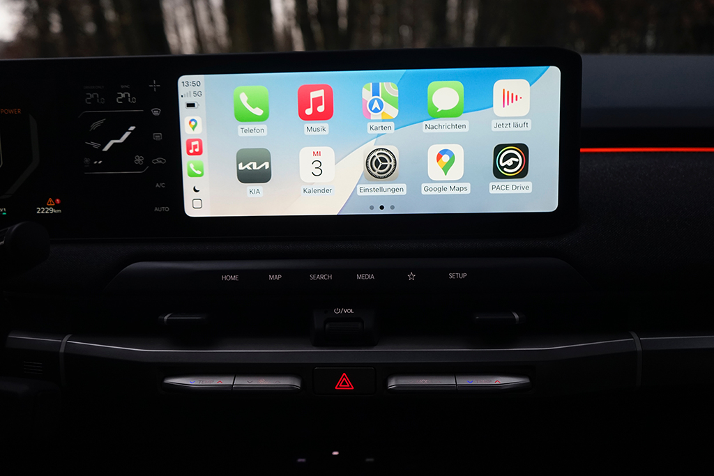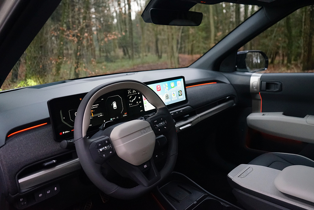 Besonders spannend ist immer wieder Kias Ansatz bei den nachhaltigen Materialien. Im EV3 kommen unter anderem recycelte Kunststoffe, wiederverwertete Textilien und biobasierte Oberflächen zum Einsatz, ohne dass sich der Innenraum deshalb weniger hochwertig anfühlt. Im Gegenteil: Die Stoffe und Verkleidungen wirken angenehm warm, griffig und hochwertig und tragen zu einer wohnlichen Atmosphäre bei, die man in dieser Klasse nicht unbedingt erwartet. Nachhaltigkeit wird hier nicht als Verzicht inszeniert, sondern als Teil eines modernen Premium-Anspruchs.