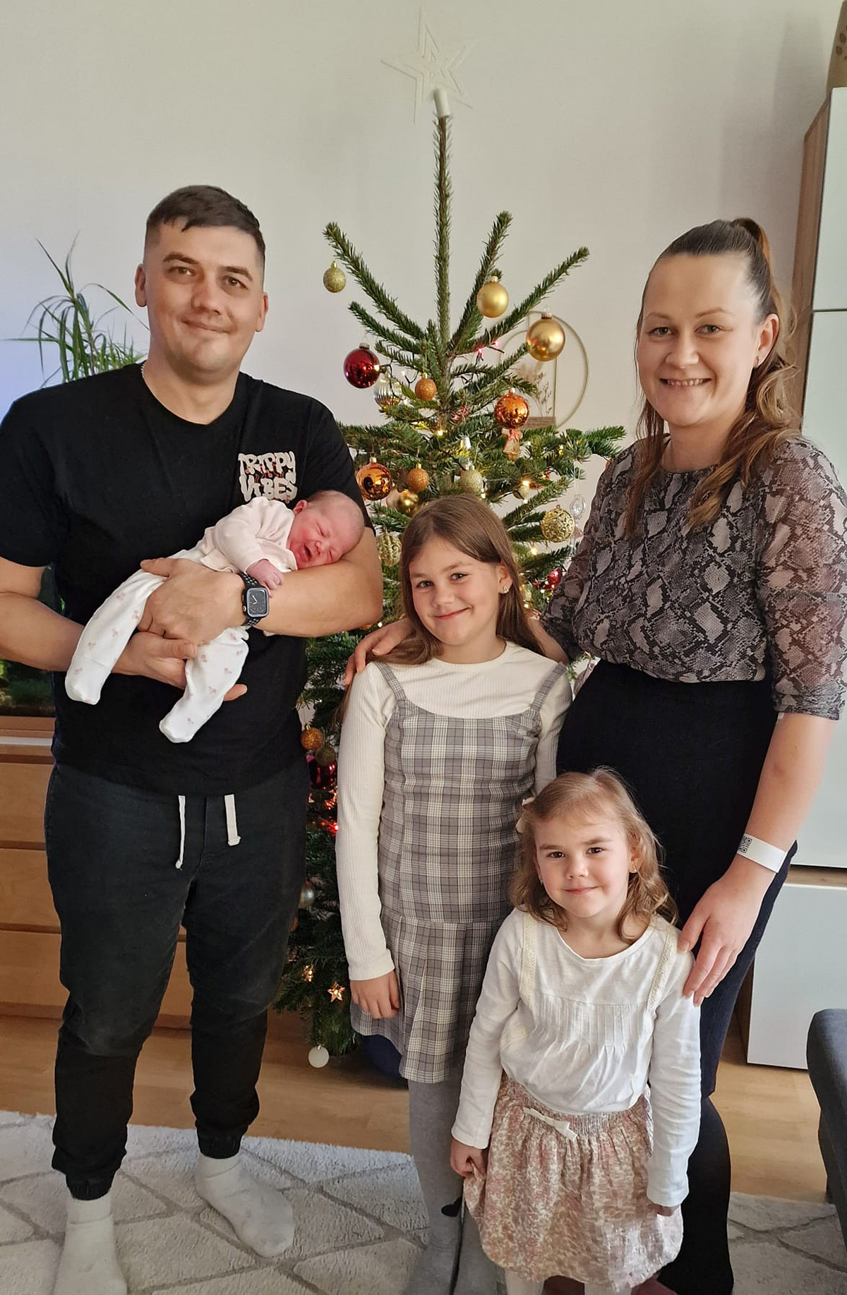 Die glücklichen Eltern Beatrix und Norbert Kiss-Imre mit Baby Luna und den beiden älteren Töchtern Szofia und Nara. Fotos: privat