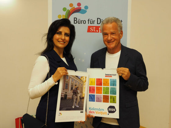 Boutiquen und Modeshops, Optiker, Juweliere und das Druckhaus Schiner haben gemeinsam mit dem Büro für Diversität und der Marketing St. Pölten GmbH dafür gesorgt, dass die Idee von Wolfgang Stadler verwirklicht und der bunte Kalender gedruckt werden konnte: Die Innenstadthändler:innen Bonita, Casa Moda, Desigual, Gabarage, das Hutfachgeschäft Öckher, Joana’s, Jones, Juwelier Hasenzagl, Noblesse, Optik Forster und der Weltladen statteten die Models aus.
