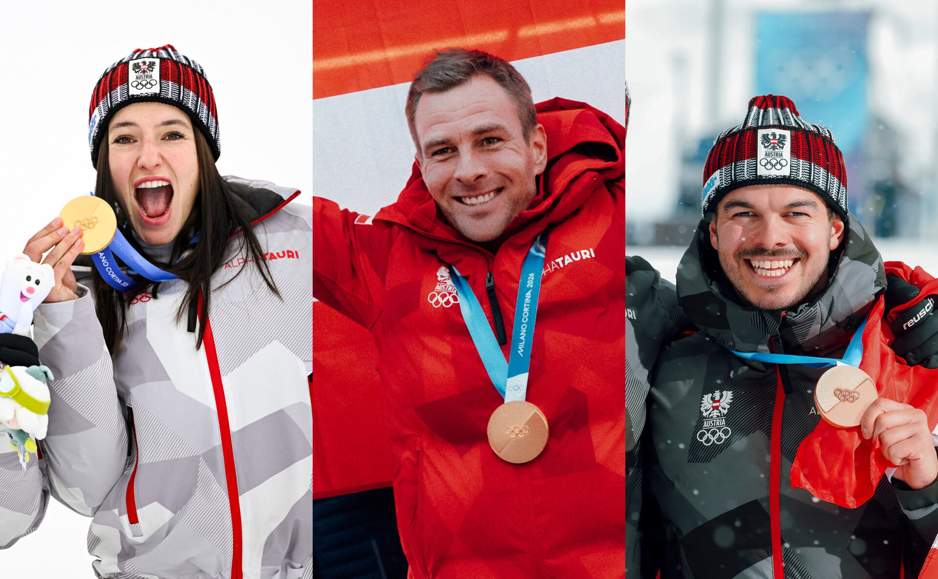 Das blau-gelbe Herz schlägt kräftig mit: Benjamin Karl, Katharina Huber und Jakob Dusek sorgen für olympische Sternstunden in Mailand Cortina.
