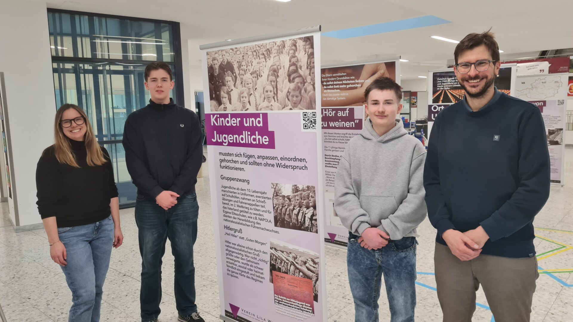 Schärding. Eine Woche lang (von Montag, 2. Februar bis Freitag, 6. Februar 2026) war im Rahmen der Zeitzeugentage im Schulzentrum Schärding die NS-Ausstellung „Lebendige Geschichte“ zu sehen. Zwölf Ausstellungstafeln in der Aula der Bildungseinrichtung BG/BRG/BORG und BHAK informierten über die Opfergruppe mit dem „Lila Winkel.“ Mit einem „Lila Winkel“ waren die Bibelforscher, wie damals Jehovas Zeugen genannt wurden, in den Konzentrationslagern gekennzeichnet, weil sie sich geschlossen und aus christlicher Überzeugung gegen das Hitlerregime stellten.