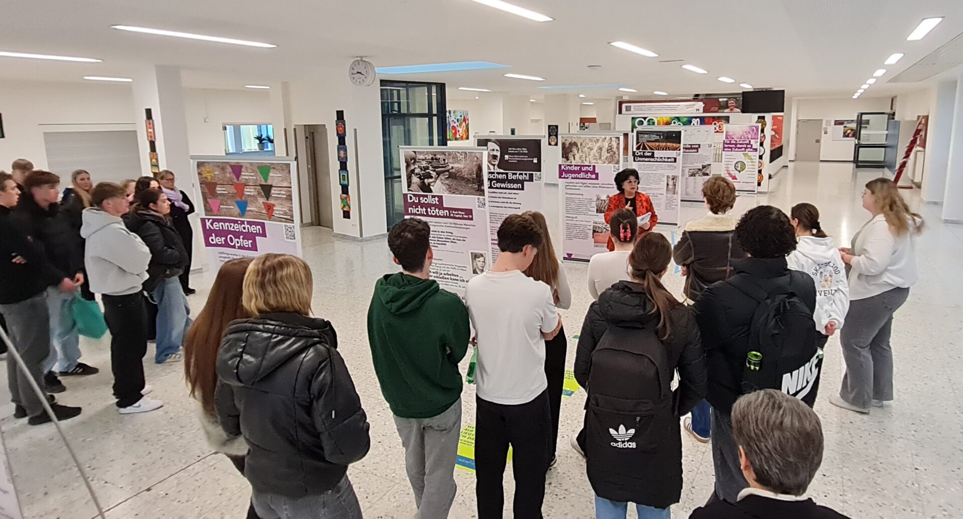 Die Ausstellung stand unter dem Motto: „Es gibt die erste Schuld, die Schuld des Verbrechens und die zweite Schuld, die des Vergessens und Verdrängens von Verbrechen.“ Die 947 Schüler*innen werden die berührenden Geschichten der Kinder und Jugendlichen nicht vergessen, die Terror, Gewalt und Misshandlungen ertragen mussten, weil sie ihrem Gewissen folgten. Aus biblischer Überzeugung lehnten sie den Wehrdienst ab, arbeiteten nicht in der Rüstungsindustrie und grüßten nicht mit „Heil Hitler.“ Eine Ausstellungstafel beschrieb die Folgen so: „Wer nicht richtig grüßte oder den Gehorsam verweigerte, wurde als schwer erziehbar, asozial oder heimatfeindlich eingestuft und bekam die ganze Härte des Regimes zu spüren.“