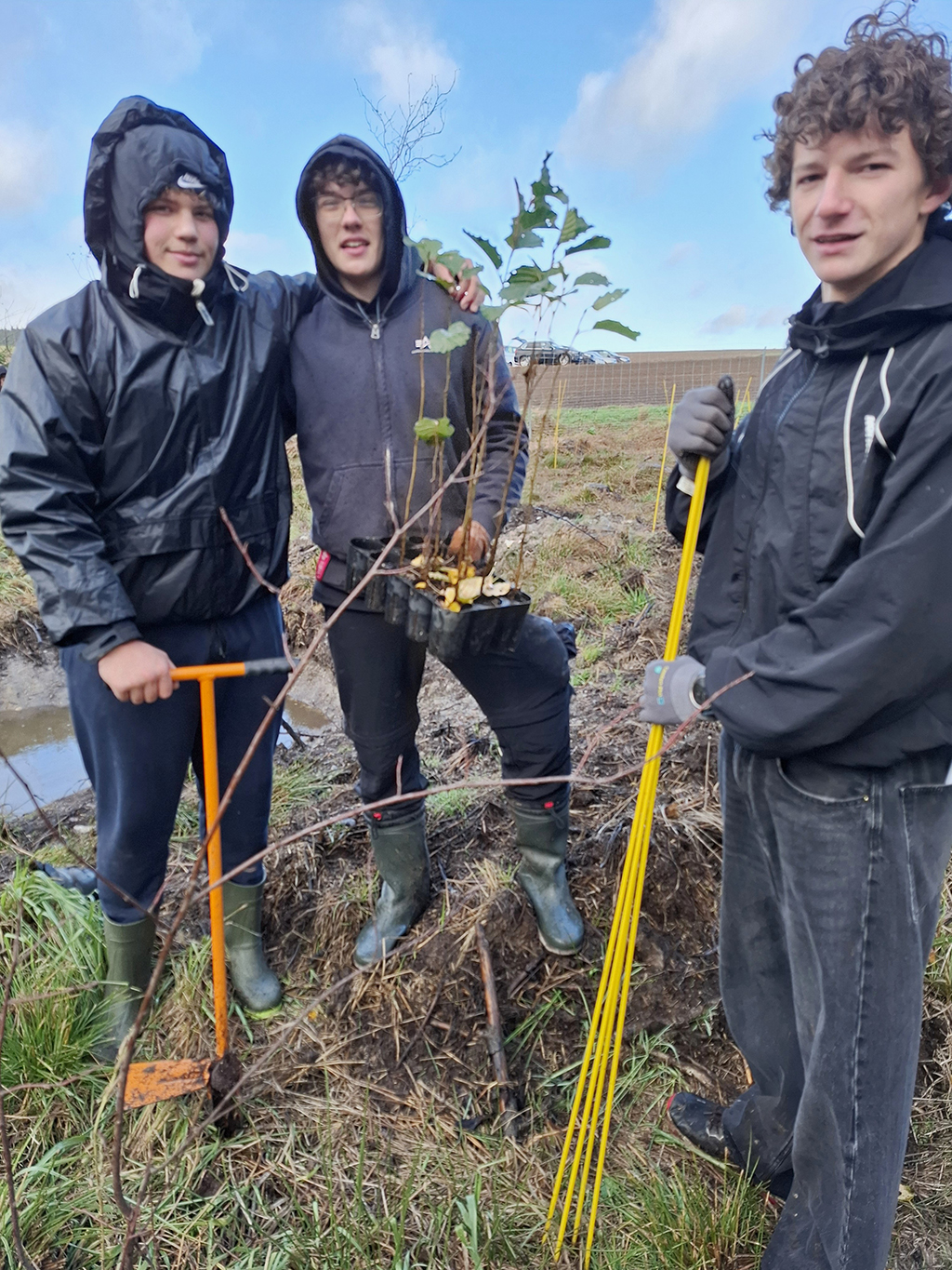 Nachhaltigkeit hautnah erleben: Schüler*innen der HLUW Yspertal beim Abfischen am Rudmannser Teich und bei der praktischen naturnahen Aufforstung in Martinsberg.
