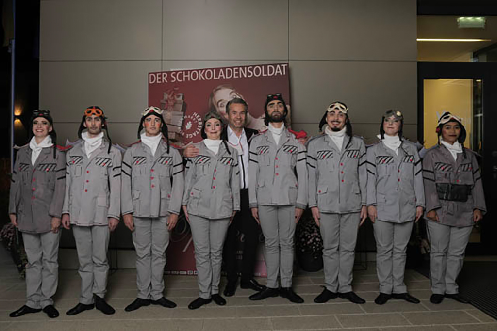 Die Premiere der 36. Herbsttage Blindenmarkt am 3. Oktober 2025 wurde zu einem großen Erfolg: Oscar Straus‘ Operette „Der Schokoladensoldat“ begeisterte die Premierengäste in der Ybbsfeldhalle durch Aktualität und wunderschöne Musik. Regisseur Marcus Ganser nahm Anleihen aus der Comic-Welt, nützte eine Reihe von technischen Effekten mit einer riesigen LED-Wand, die Drehbühne und eine Rutsche ließen die Aufführung perfekt abschnüren. Das Solistenensemble, eine Tänzerschar, der entzückende Kinderchor sowie der wie immer präsente Chor der Herbsttage zeigten einmal mehr, wie Operette heute sein kann, nämlich bunt, frech und sexy zugleich. Der neue Musikchef Thomas Böttcher musizierte mit dem Kammerorchester Ybbsfeld, dass es eine Freude war. Stehende Ovationen, ein Blumenmeer und Bravorufe belohnten die Darstellerinnen und Darsteller.