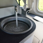 Unser „Camper“ wird vom 136kW/185PS starken 2.0l EcoBlue Dieselmotor und einem Automatikgetriebe angetrieben. Damit sind beste Voraussetzungen für zügiges Weiterkommen gegeben – ein idealer „Partner“ zum luxuriösen Apartment „inside“. Das Einsteigen und die Cockpitlandschaft insgesamt sind ebenfalls der des „Normalo Transit“ ident. Gewohntes Cockpit, klassische Zeigerarmaturen und das Ford Navigationssystem inklusive Ford SYNC3 samt AppLink und 8“ Multifunktionsdisplay sind uns wohlvertraut und intuitiv bedienbar. Die Ausstattungsliste ist üppig und umfasst natürlich Sitzheizung, Sicht-Paket 3 mit Rückfahrkamera, Lederlenkrad, Komfortdrehsitze für Fahrer und Beifahrer etc.