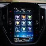 Das Cockpit verbinden wir schnell mit moderner Logik. Der große 11,6-Zoll-Touchscreen reagiert flüssig, drahtloses Apple CarPlay und Android Auto inklusive induktiver Ladeschale und DAB+ sorgen für Konnektivität, sechs Lautsprecher für klaren Klang. Schaltwippen am Lenkrad geben bei Bedarf manuelle Kontrolle über die Lineartronic. Besonders beeindruckend: das Driver Monitoring System mit Gesichtserkennung und Müdigkeitswarner, dazu Multi View Monitor für Rundumsicht sowie EyeSight-Assistenz, Totwinkel- und Querverkehrswarner, Rückfahrkamera und Rückfahr-Kollisions-Assistent. Viel Technik, aber klar integriert.